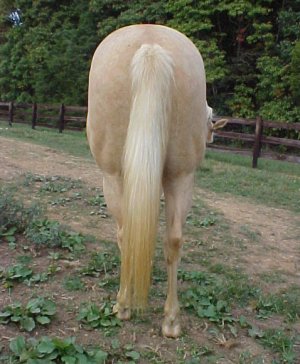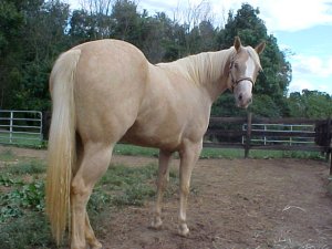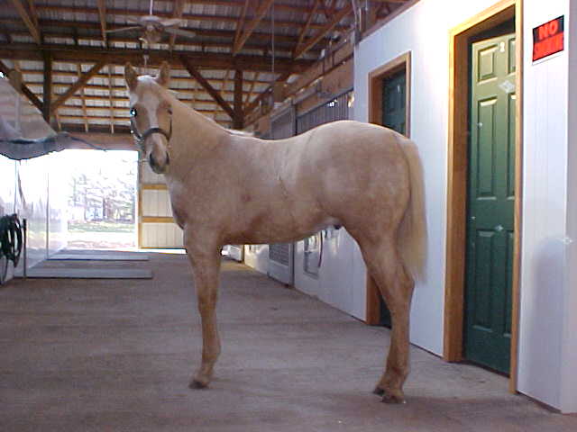 golden palomino color. We continue to ride her until she is sold. This mare is in the AQHA IF and eligible for the KY
