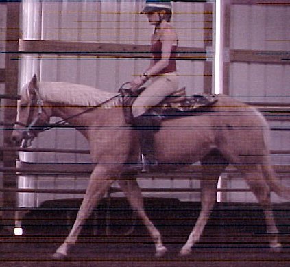 Pictured here under saddle at 3 YO and 15HH. At 4 days old, Booty was doing flying lead changes! Her lead changes are