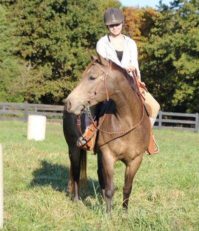 under saddle. Her dam and sire have produced roping horses and hunter under saddle types, but all of their get ride. She is an