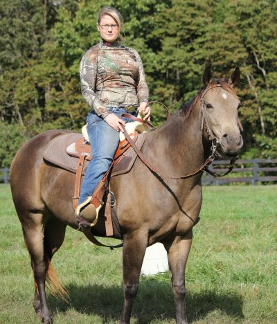 Bo and JJ Rap produced a beautiful foundation buckskin filly with Smashing. Standing 15HH, Smash has had 3 years of saddle time and is a VERY laid back mare when handling and under saddle. She is as bombproof as a horse can be, never spooking even when scaring up a flock of turkey. Her bloodlines and siblings show Smash can do about anything you ask of her. If you want a ranch horse to be your partner or one to begin reining, or in western pleasure, this mare fits the need. She has a soft little trot and canter. Smash is also unflappable on the trail. Smashing has no vices and is in the KyBIF program. Click here to see more photos in Skips Bo Smashing's Facebook Album.
